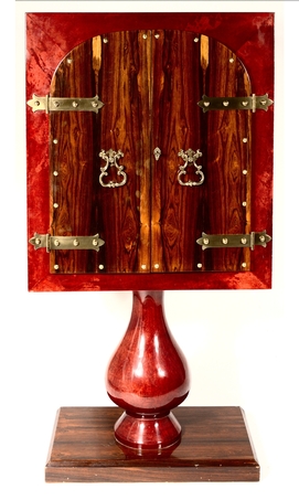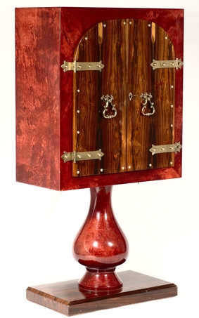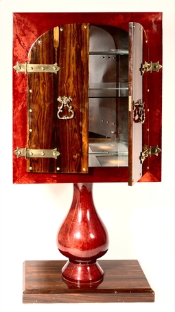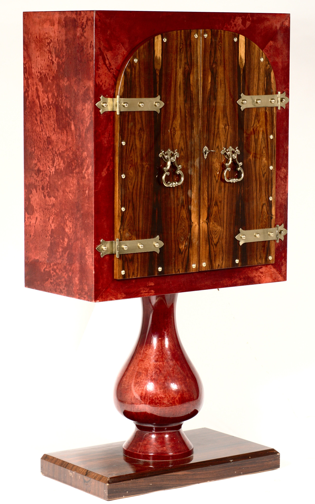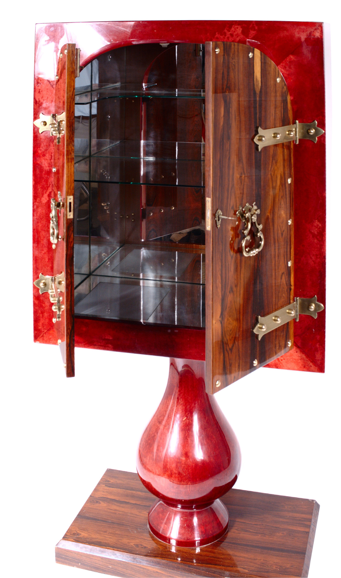 Cabinet Bar By Aldo Tura In Red Goatskin, Very Unusual in This Color. Perfect condition, with key...