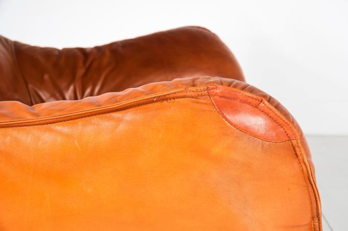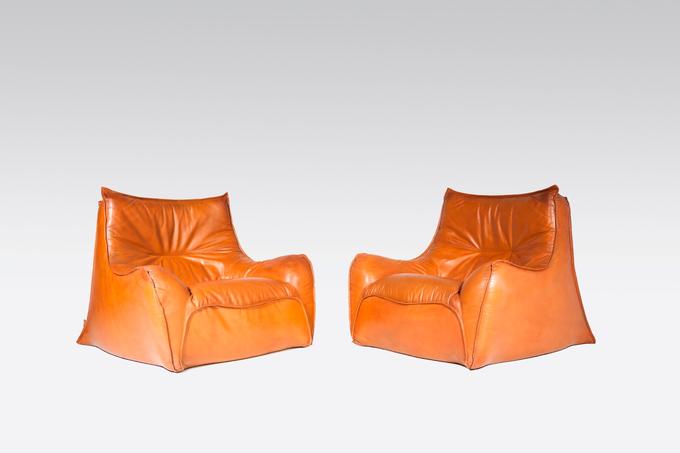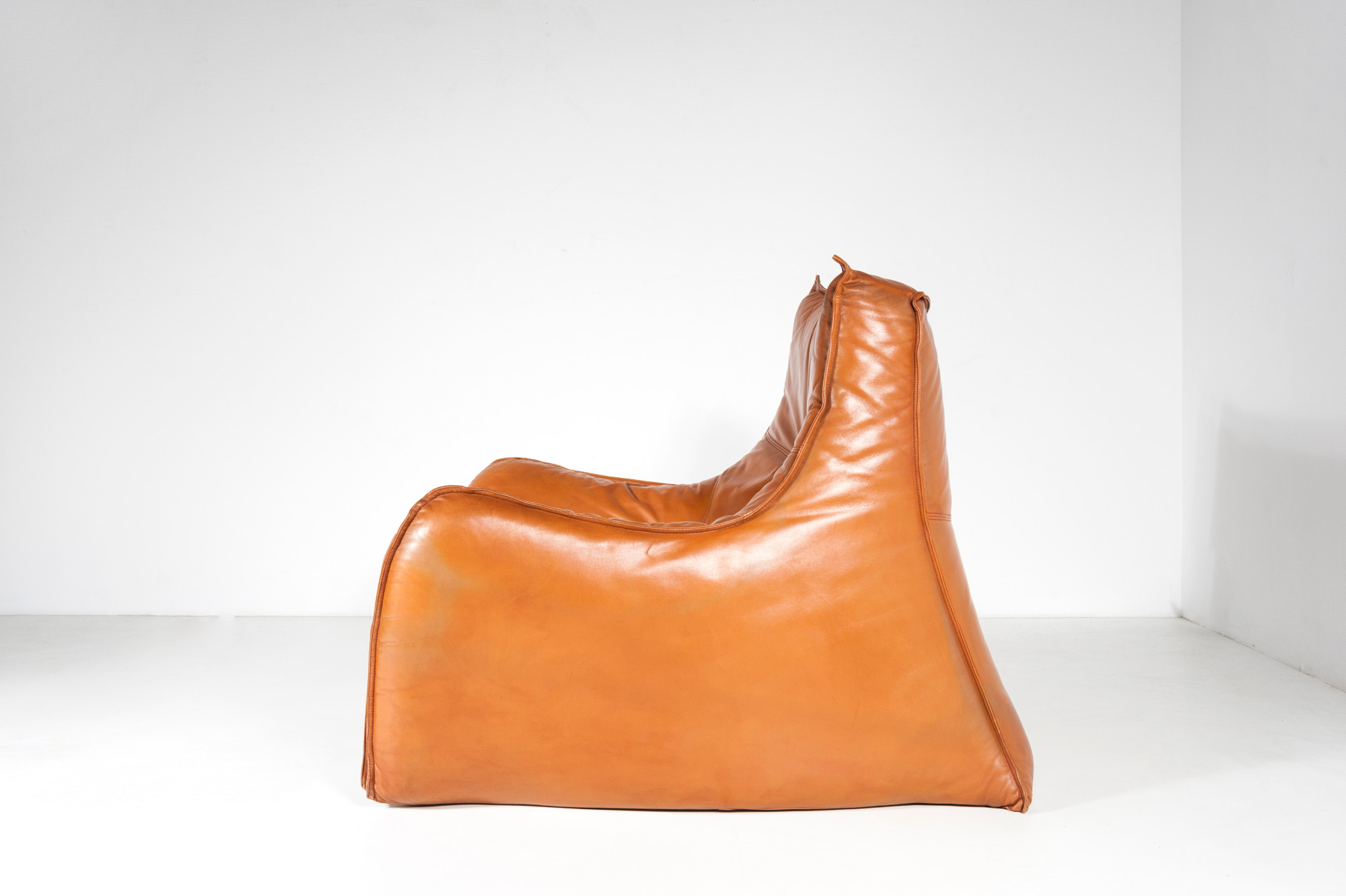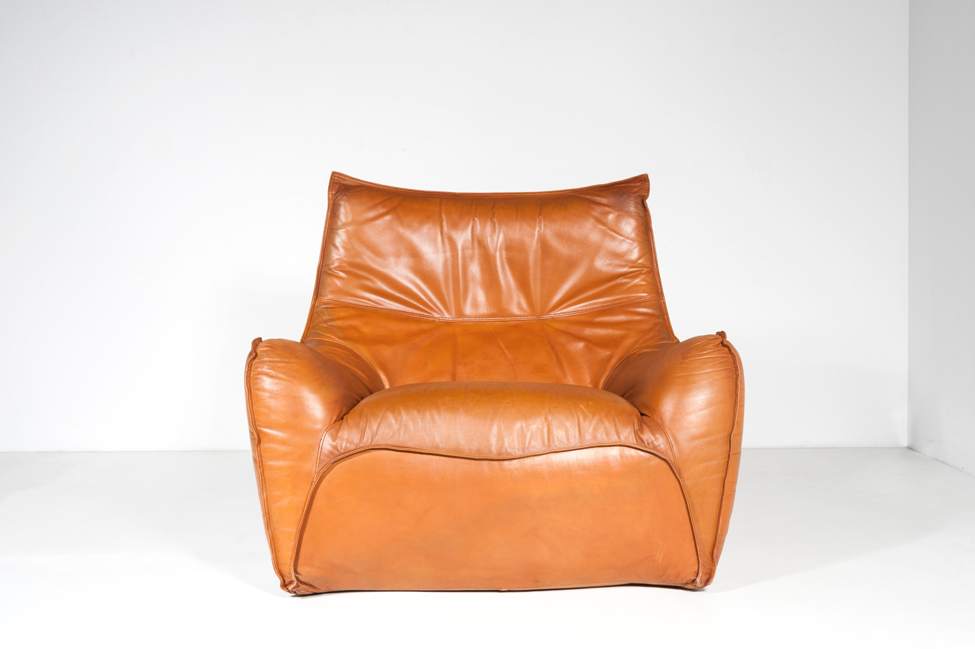 Pair of Armchairs By Michel Ducaroy for ligne roset in cognac leather, form 1970's, very unasual and rare set....