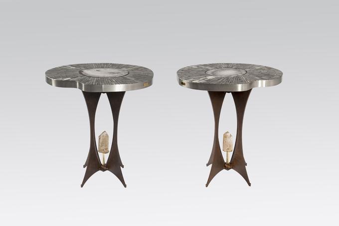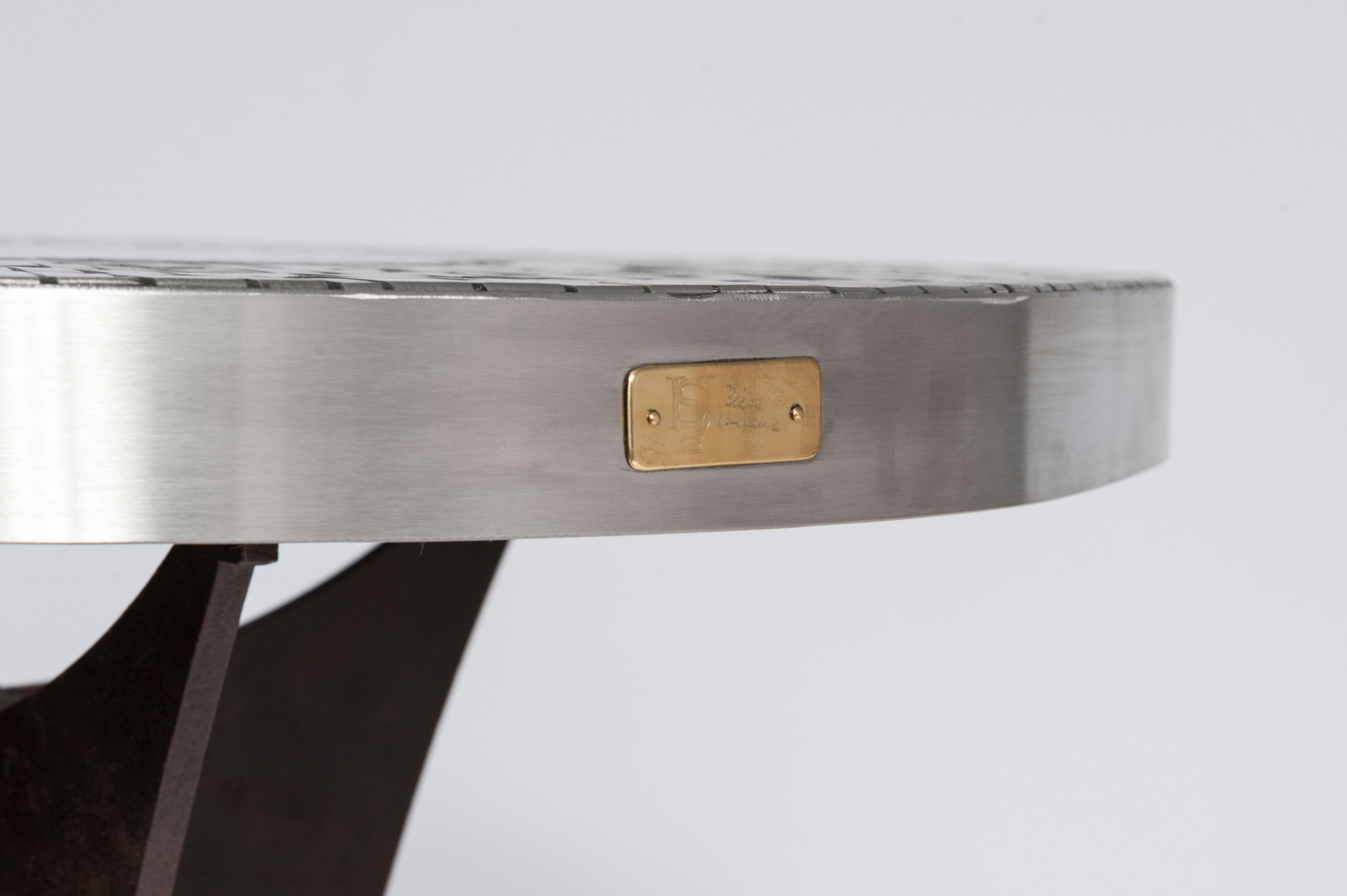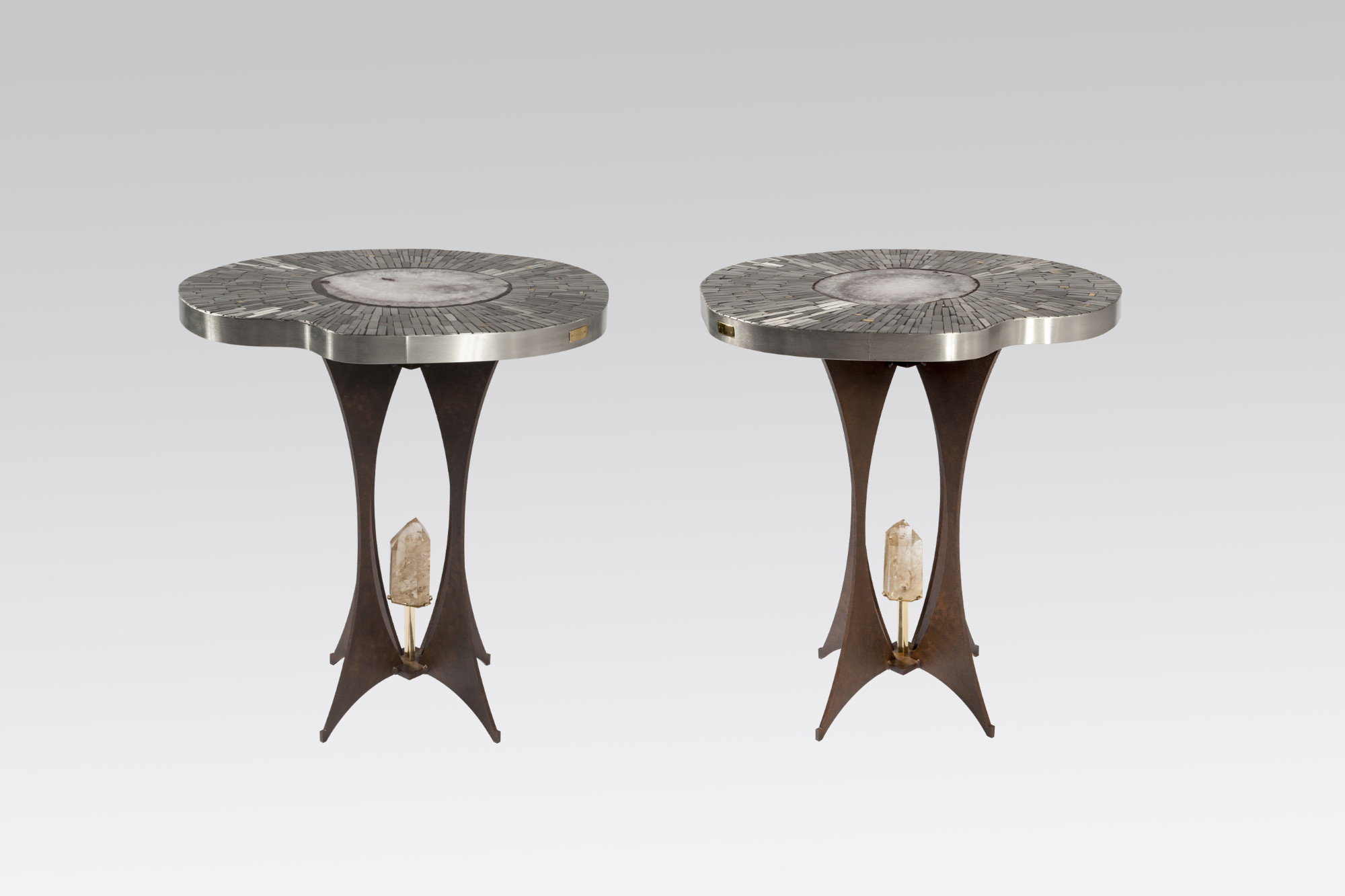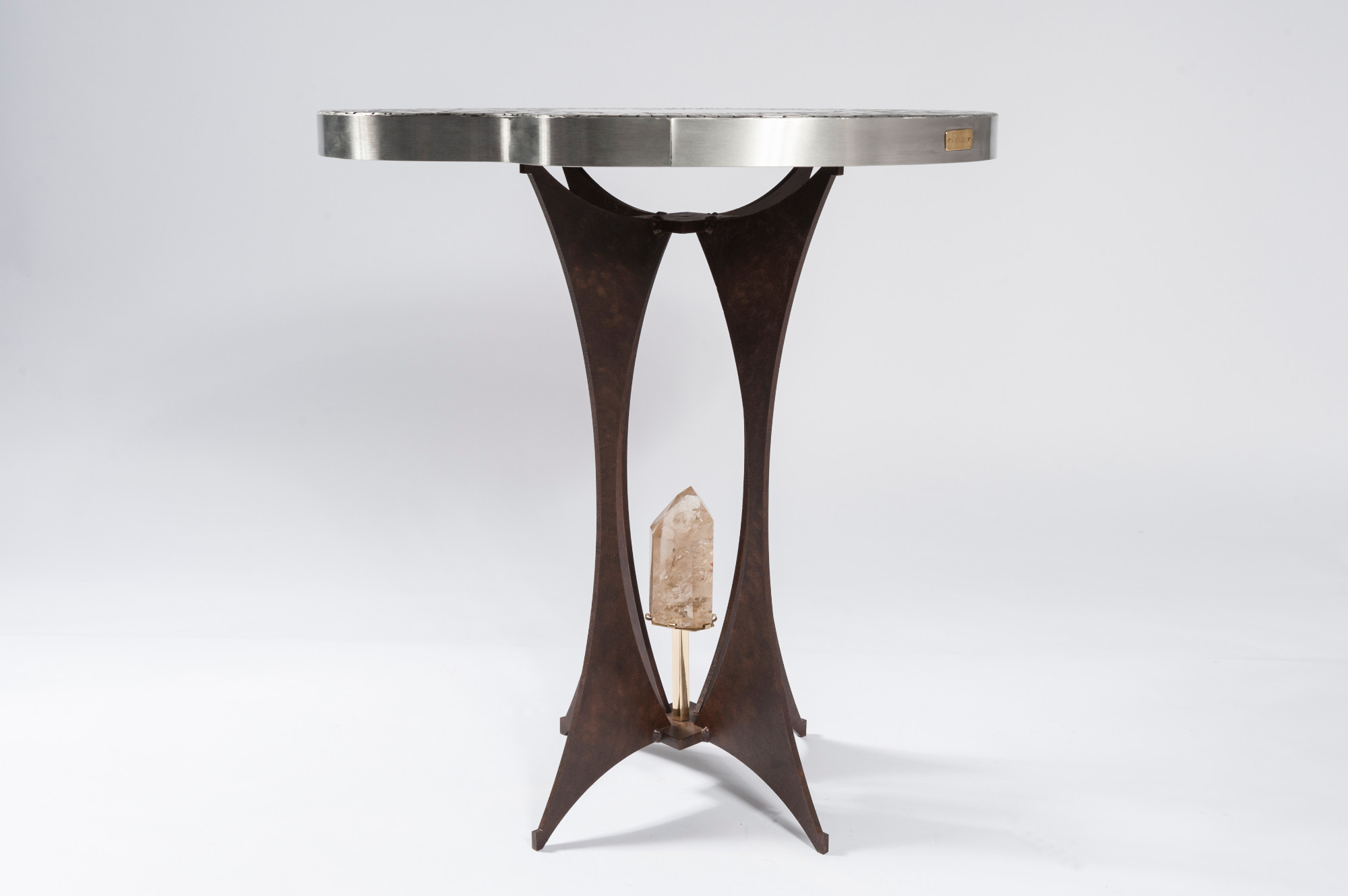 Created to measure by Stan Usel, this original pedestal table in stainless steel mosaic, inlaided with a unique agate stone and quartz stone, is  designed  to give your very home decoration a great sense of originality . Exceptional craftsmanship with the art of tailor made furniture. This original and unique pieces are signed by the artist and comes with the certificate of authenticity.All pieces can be custom-made to order. Proudly Belgian.
