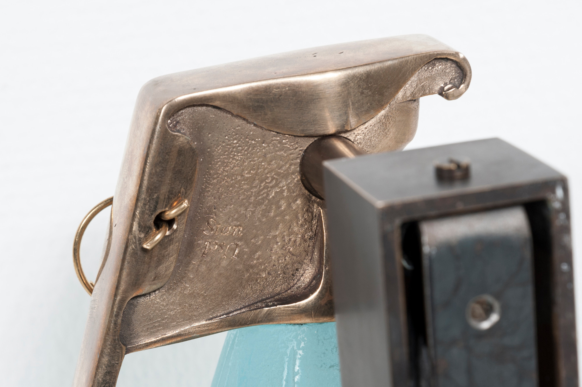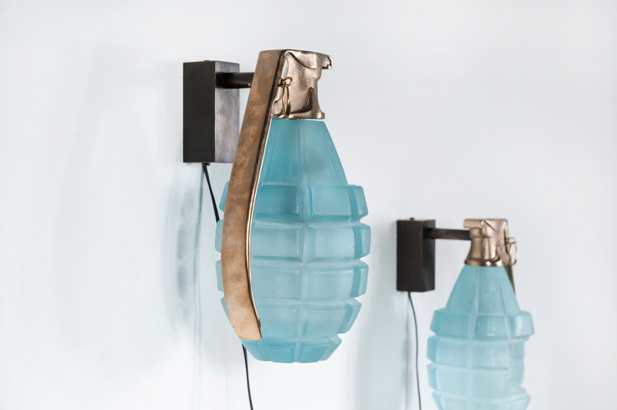 Created to measure by Stan Usel, this pair detail of blue glass and bronze sconces. Exceptional craftsmanship with the art of tailor made furniture. This original and unique pieces are signed by the artist and comes with the certificate of authenticity.All pieces can be custom-made to order. Proudly Belgian.