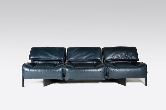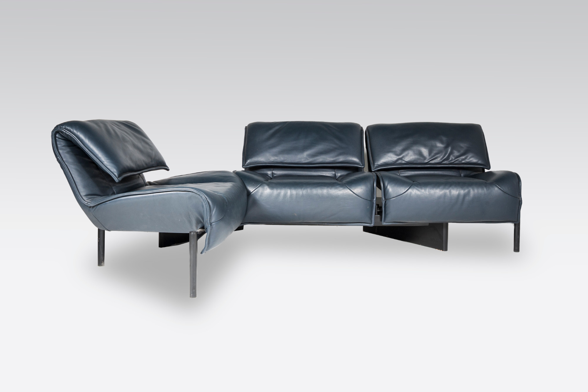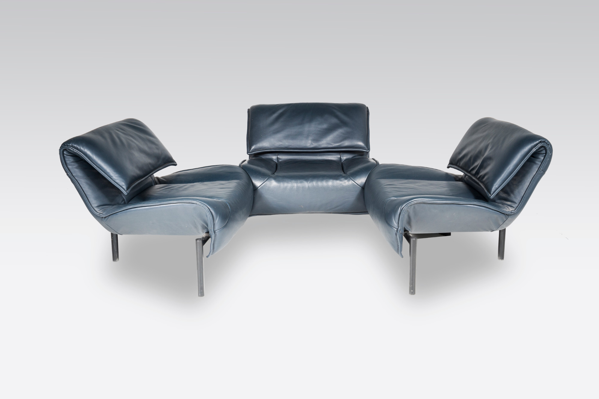 A Nice sofa in blue leather by Vico Magistretti For Cassina in Perfect condition, completely removable, dim : 250cm x 112cm