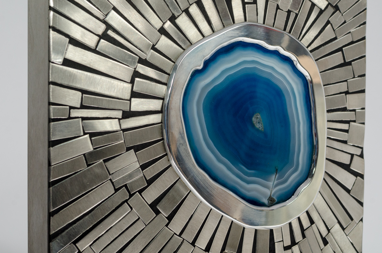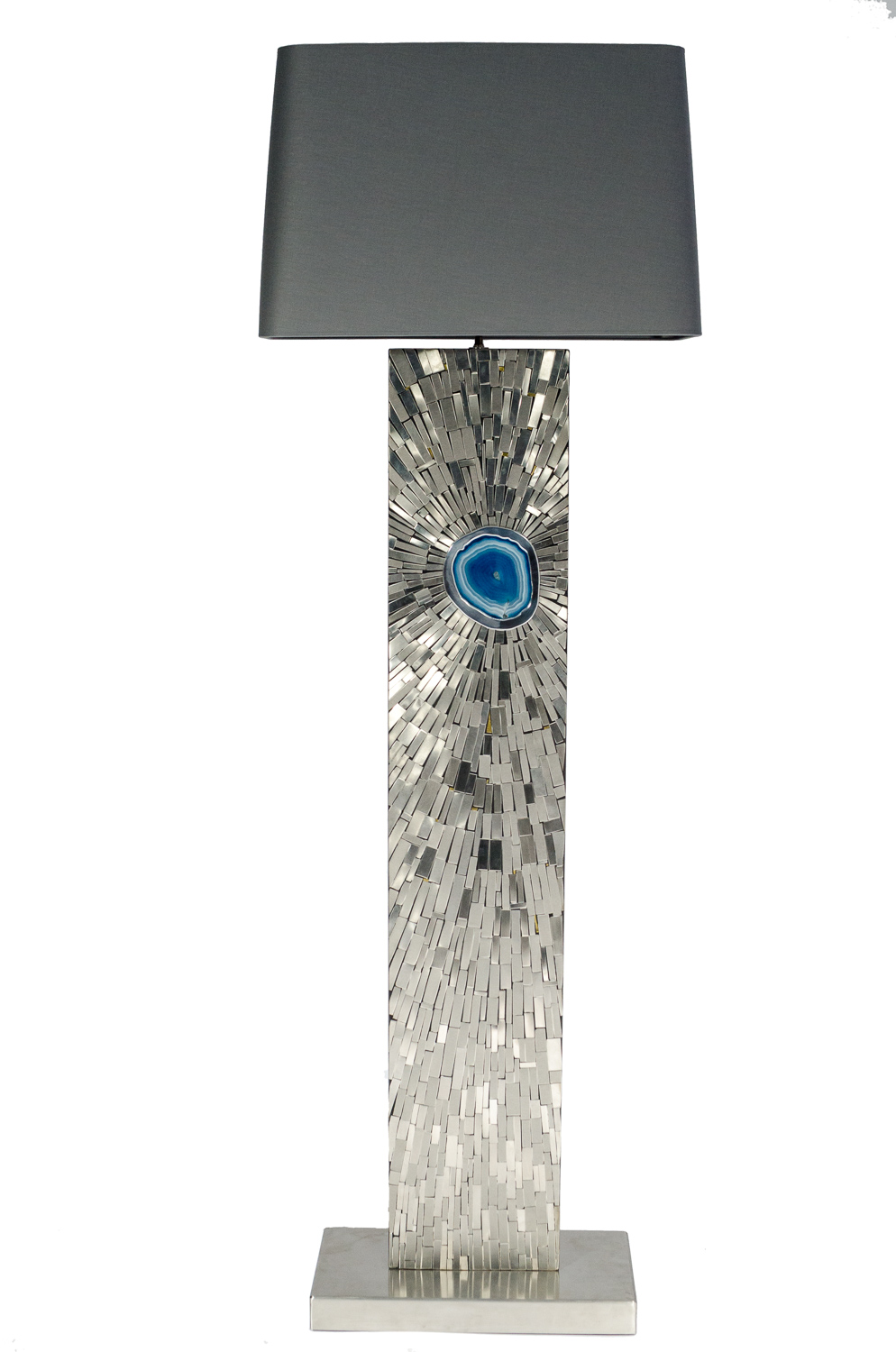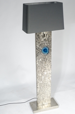One of a kind studio built floorlamp ,Mosaic stainless steel, inlaid agate by Stan Usel.